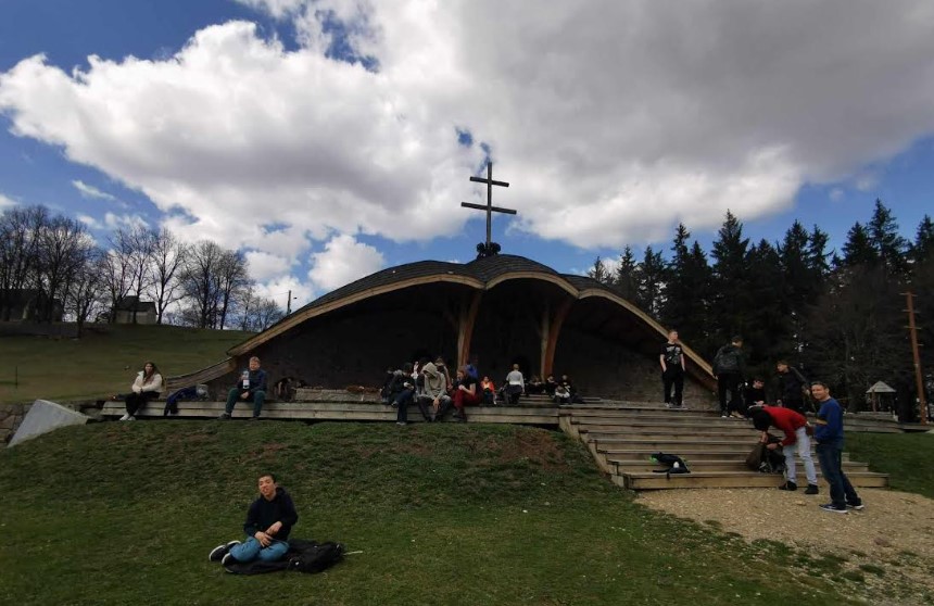 Ezután jutottunk el Csíksomlyóba, a kegytemplomba, majd, aki elég erőt érzett magában, felment a nyeregtetőre, ahol a pünkösdi búcsúkat tartják több százezer magyar ember részvételével.